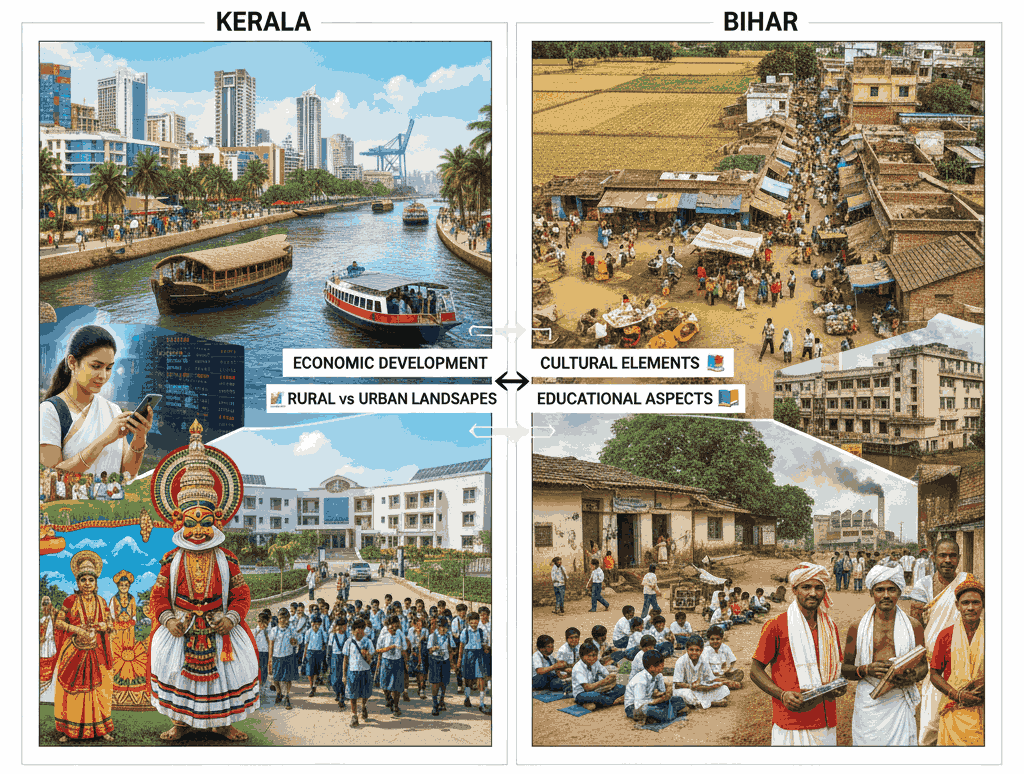 Kerala represents the other end of India’s development spectrum. With a literacy rate of 96%, life expectancy above 75 years, and low poverty levels, Kerala has long been celebrated for its “human development first” model.